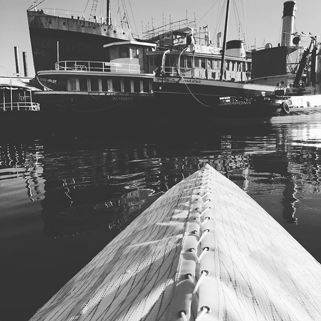 View fullsize Black and white on a full colour day. #handmade #skinonframe #woodenboats #sydney #kayak